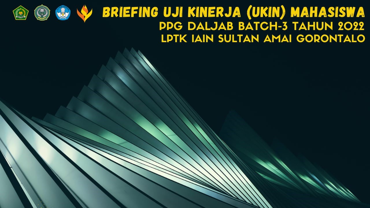 Selasa, 3 Januari 2023 Prodi PPG LPTK IAIN Sultan Amai Gorontalo mengadakan kegiatan Briefing Uji Kinerja (UKin) bagi Mahasiswa Pendidikan Profesi Guru (PPG) dalam jabatan Daljab Batch-3 Kementerian Agama RI Tahun 2022. Kegiatan ini diikuti oleh seluruh mahasiswa baik mahasiswa PPG Dalam Jabatan (Daljab) Pendidikan Agama Islam (PAI) maupun mahasiswa PPG Daljab Madrasah.